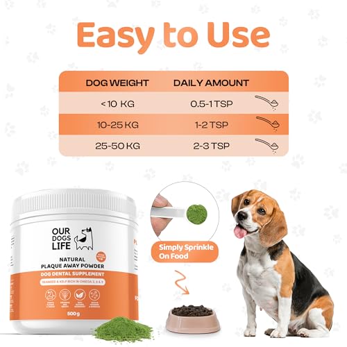 Plaque Off Pulver für Hunde – 500 g | Bio-Hundezahnreinigungsprodukt | Zahnsteinentferner & Atemerfrischer | 100% natürlicher Hundeplaque-Entferner