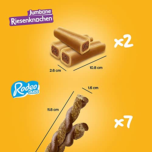 Pedigree Hundesnacks Mixpack mit Rodeo Duos Huhn & Bacon (24 Stück) und Riesenknochen Rind & Geflügel (4 Stück), 780g