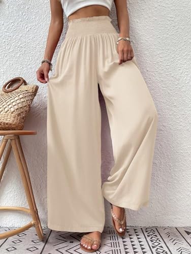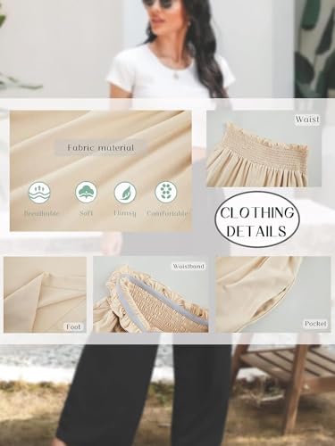 Cicy Bell Damen Hosen Gerade Locker Elastische Weite Beinhose Taille Palazzo Hose Mit Taschen