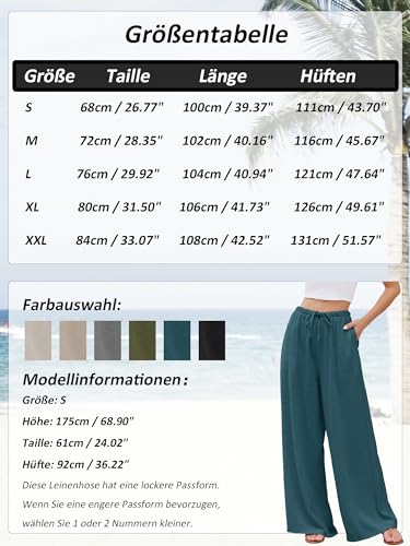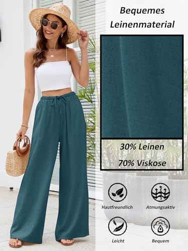 Puimentiua Sommerhose Damen Leicht,Sommer Leinenhosen,Palazzo Hose,Wide Leg Pants,Elegant Stoffhose,Luftig Sommerhosen,Women Leinen,Lockere Hosen mit Weite Bein und Tunnelzug (S-XXL)