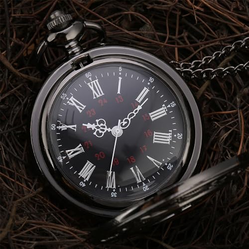 Moderne Taschenuhr, Quarz-Taschenuhr mit Kette, Vintage-Quarz-Taschenuhr, römische Ziffern, stilvolle Taschenuhr für Geburtstag, Jahrestag, Weihnachten