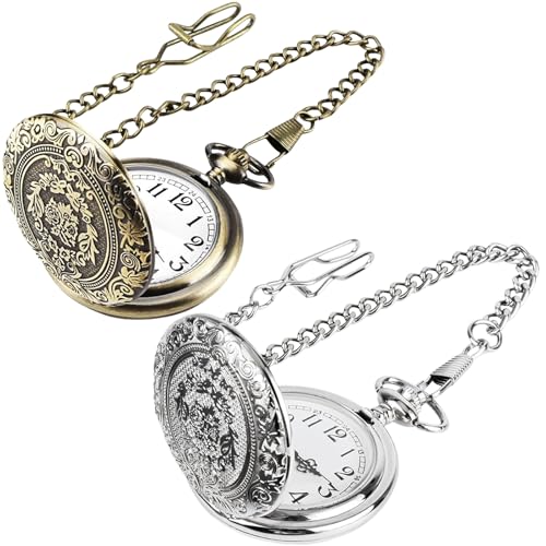 Taschenuhr, 2 Stück Vintage Taschenuhr mit Kette, Retro QuarzTaschenuhr Arabisch Ziffern QuarzTaschenuhr für Männer Frauen Vater Opa Geburtstag Jahrestag