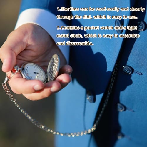 Mit Vintage-Eleganz und klassischem Look ist die Taschenuhr ein tolles Accessoire für gesellschaftliche Anlässe. Auch ein tolles Geschenk für Freunde zu Weihnachten, Geburtstagen, Jubiläen, Vatertag, Muttertag, Abschlussfeiern und Valentinstag