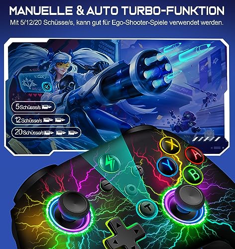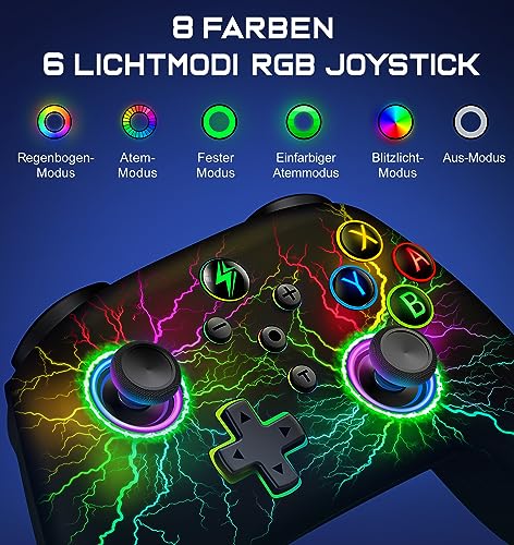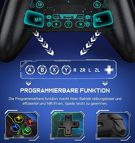 Switch Controller – Kabellos Controller für Switch/Lite/OLED Konsole – Switch Controller mit Cooles RGB Look, Programmierbare/Turbo/Aufwachfunktion, Präzise Joysticks, Dual Motors Vibration